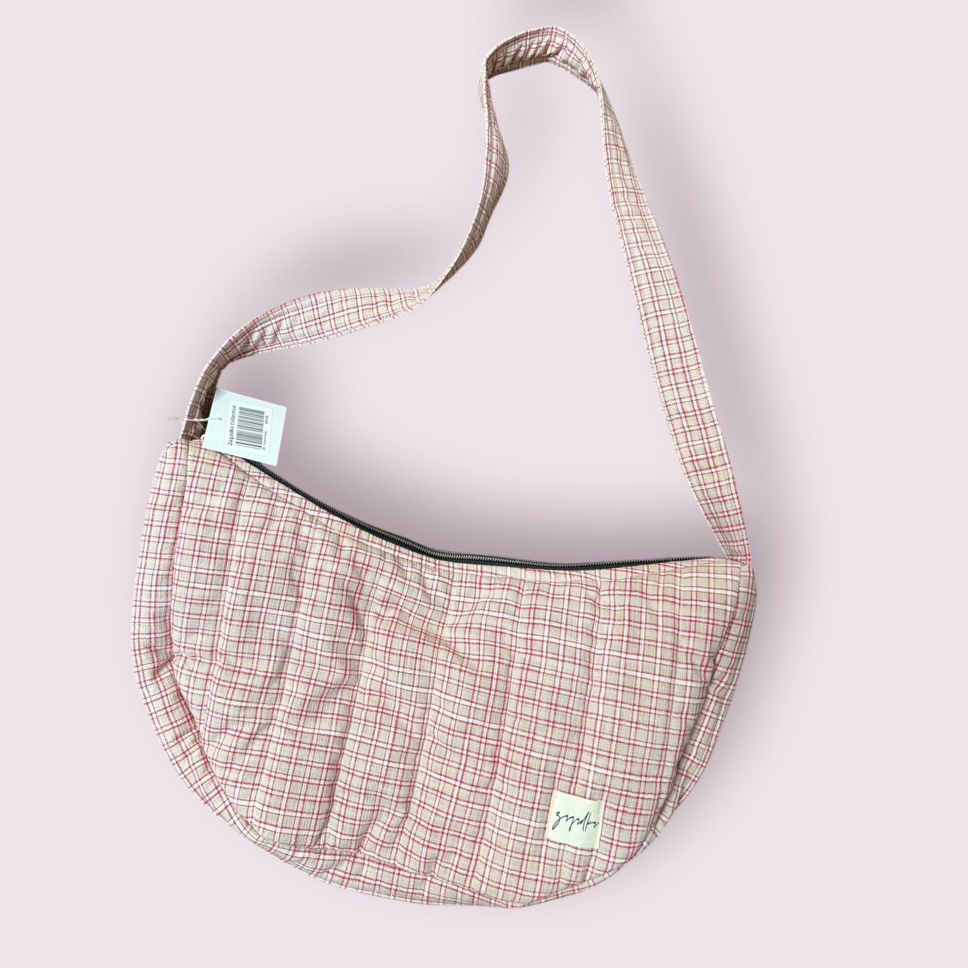 If you are looking for a unique slouch purse this quilted one is for you. It is medium in size, has a zipper, can be worn on the should or as a cross body. It is also made out of mostly upcycled materials.